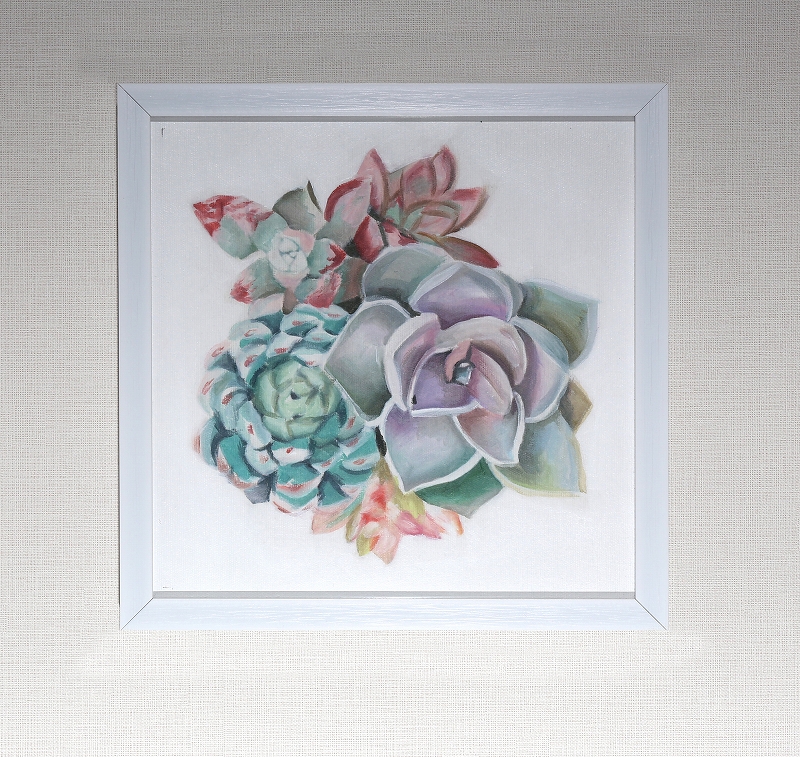 ●作品名:no title ●タイプ: 油絵 ●商品サイズ: (額) 約33cm x 約33cm (キャンバス) 約30cm x 約30cm 額付きです。 本作品の表面にはアクリル板が付属します。 取付金具は付属しておりません。