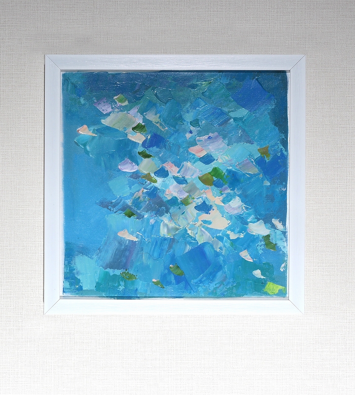 ●作品名:no title ●タイプ: 油絵 ●商品サイズ: (額) 約33cm x 約33cm (キャンバス) 約30cm x 約30cm 額付きです。 本作品の表面にはアクリル板が付属します。 取り付け金具は付属しておりません。